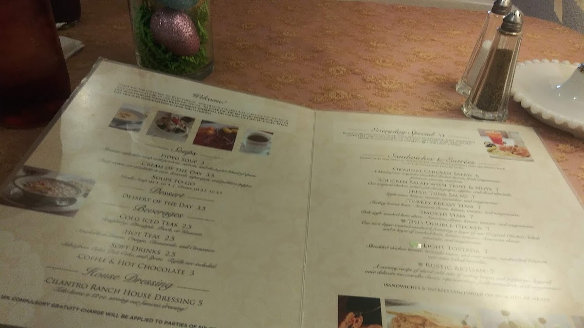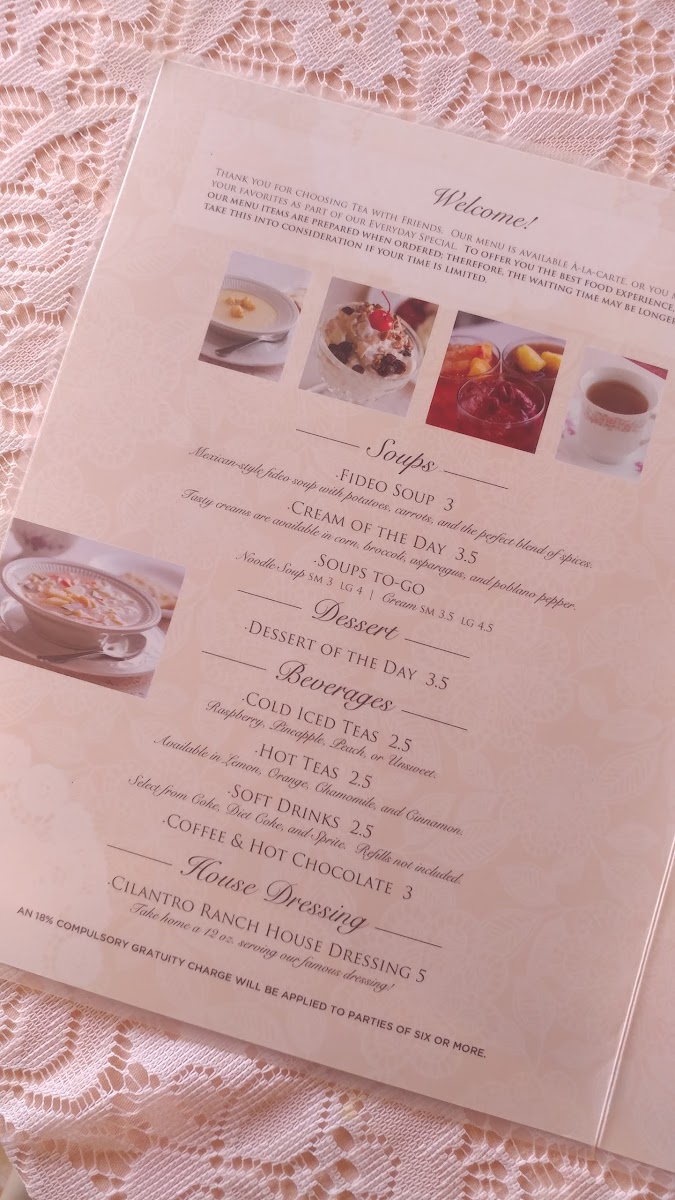 Tea With Friends offers a delightful selection of comforting dishes perfect for a casual meal. The Fideo Soup is a flavorful option for soup lovers, while the Soup To-Go Noodle Soup is a convenient choice for those on the move. For sandwiches and entrees, the menu presents the hearty Rustic Artisan and the classic Deli Double Decker, both ideal for a satisfying lunch. Those craving something with a bit of spice can enjoy the Smoking ChipotleFresh Tuna Salad, which combines fresh tuna with bold chipotle flavors. Additionally, the Smoked Ham provides a savory choice for a more traditional sandwich. The house dressing, Cilantro Ranch House Dressing, is a perfect complement to any dish, adding a zesty kick. To wash it all down, Tea With Friends offers a variety of Cold Ice Teas and Hot Teas, ensuring there’s something to suit every preference. Whether you're looking for a quick bite or a relaxing meal, the menu provides a range of options to satisfy all tastes.